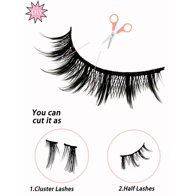 - DIY Lashes Clusters:These lashes can be worn not only as strip lashes, but you can also cut them as cluster lashes or half lashes and freely change the style to suit a variety of scenarios and make your makeup more attractive.