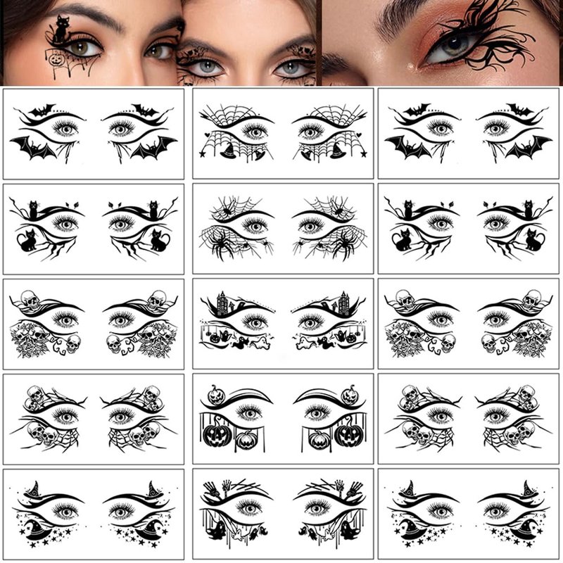 10 Pairs of Halloween Eye Shadow Temporary Tattoo Stickers Eyeliner Decals Face Eye Makeup Stickers for Women Girls Halloween Masquerade Party