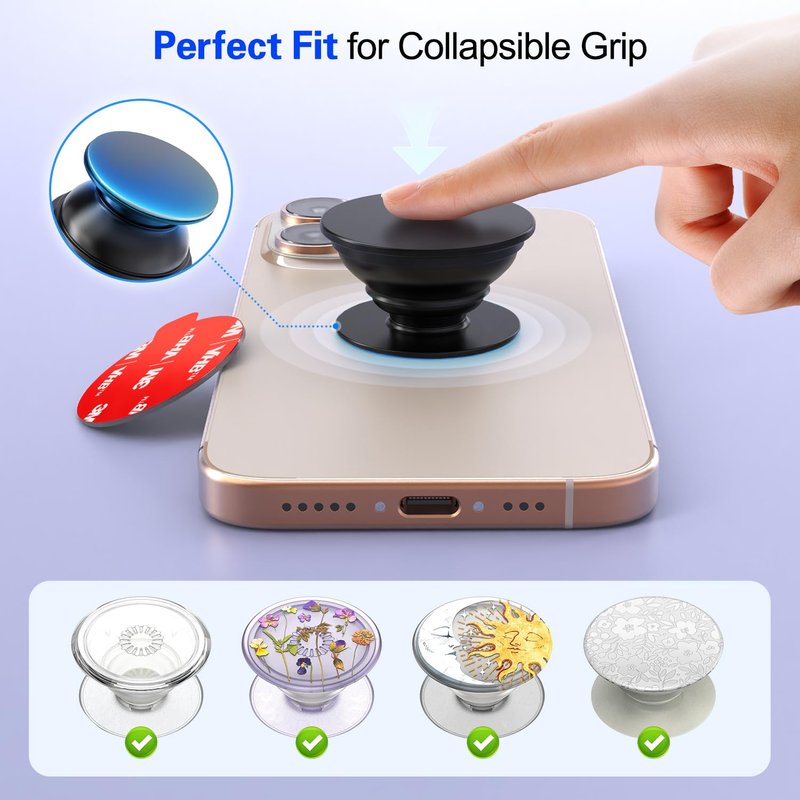 - [Easy to Installation] The double-sided sticky tape equipped with a convenient tear-away tab, easy to peel off without needing extra tools.This user-friendly design makes it quick and simple to install your phone grip. You just need to peel off the film of stickers replace and stick the adheisve on the socket base to install it (Note: 1.Please waited 24 hrs to use it after applying 2.If the film is difficult to peel off, gently press it back and try again