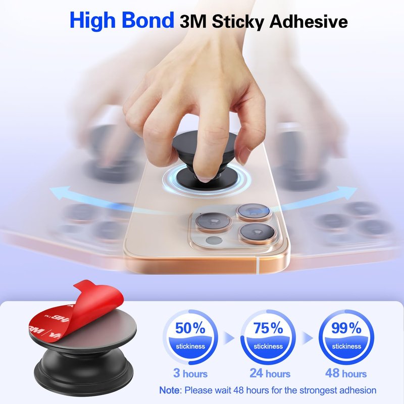 - [Super Strong Adhesion Double Sided Tape] Our 3m Vhb adhesive replacement use high-strength adhesive, the stickiness increases over time, the longer it is placed, the stronger it will adsorb. Giving you a high bond, long lasting hold that keeps your socket grip secure attached to the phone, ipad during everyday use. No more worrying about your pops up pull out grip are separated from device due to insufficient stickiness