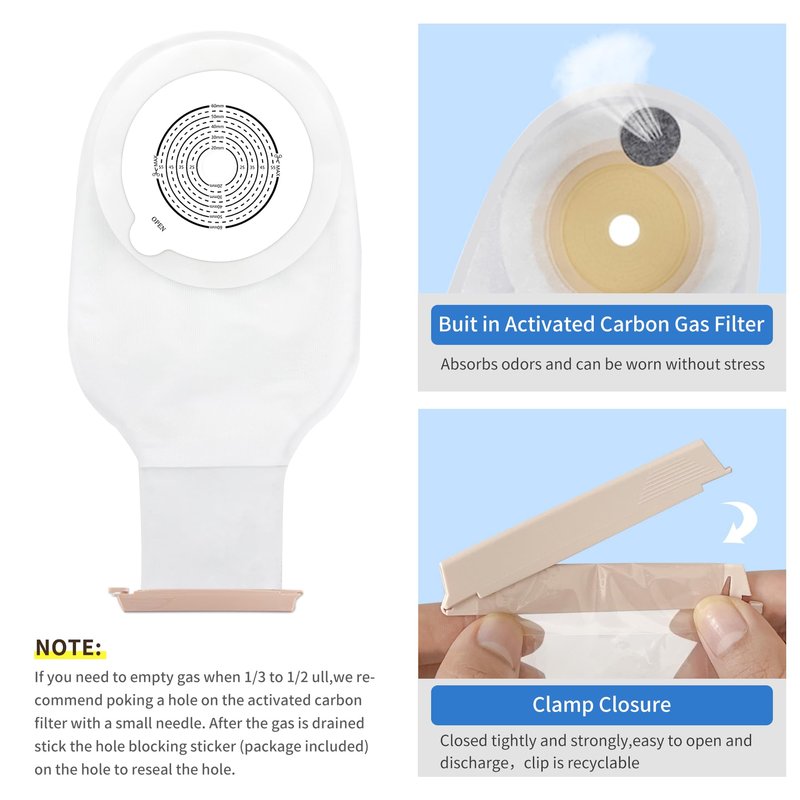 - ✔PACKAGE INCLUDE : 10PCS One-piece ileostomy bags, ostomy measure card, 3x clamps,Air hole sticker.