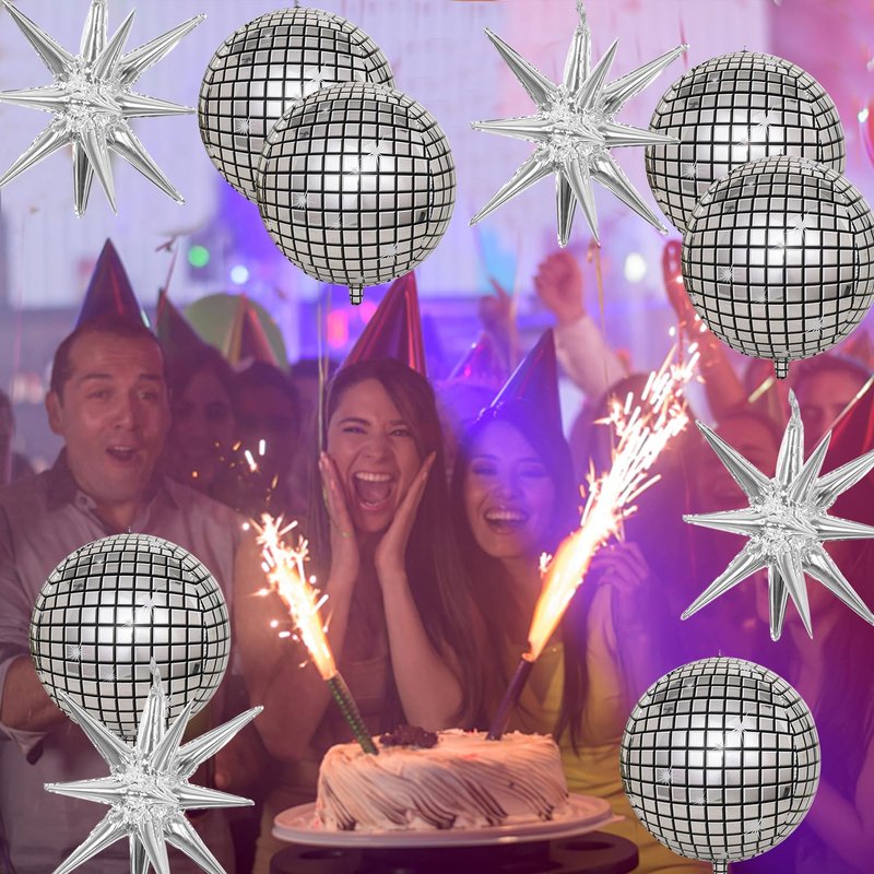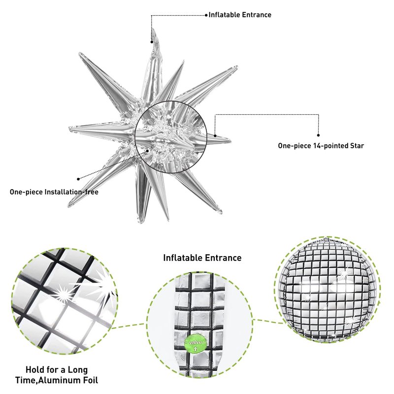 - 【High Quality Material】These disco ball balloons and Explosion Star Foil Balloons are made of aluminum foil, Quality and durable materials make the balloons look shiny and delicate. You can combine these beautiful disco-themed balloons with other latex balloons to add color to the party. The balloon stars are practical, reusable, and do not leak easily.
