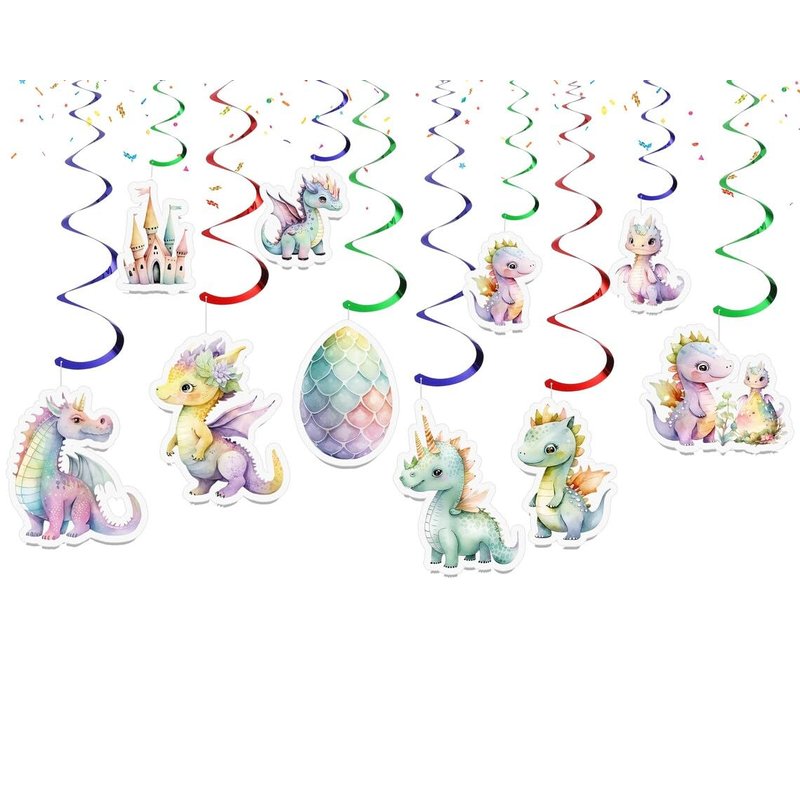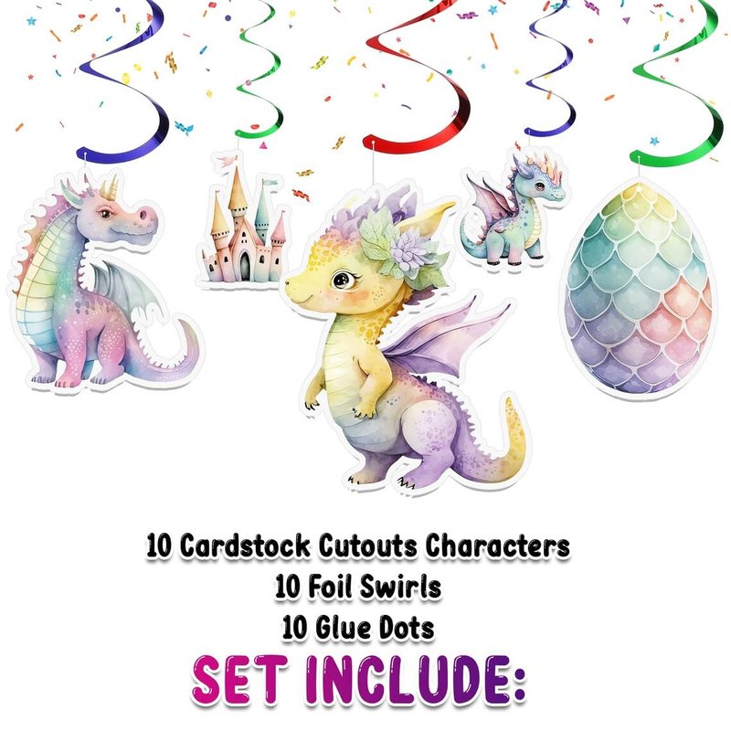 Elevate your celebration with our 10 Pcs Enchanted Dragon Streamers, the perfect addition to any girl's baby shower or birthday party. Featuring whimsical dragon designs in a palette of enchanting colors, these streamers are designed to create a magical atmosphere that captivates and delights. Easy to hang and made from high-quality materials, they're the ideal choice for adding a touch of fantasy to your special event.