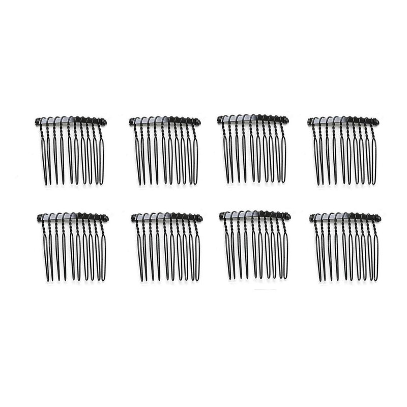 10 PCS Metal Wire Hair Clips and Barrettes - 10 Teeth/4cm Twist Bridal Combs, Veil Hair Pins for Wedding Party Bulk Pack for Women and Girls (Black)