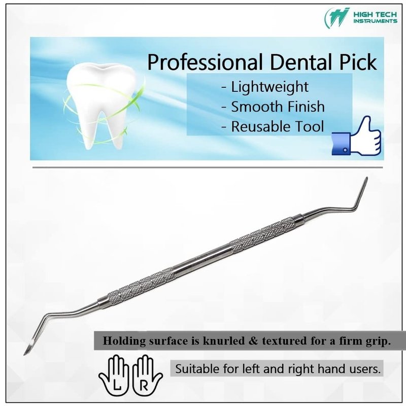 These dental tool is made of high quality stainless steel promising durability, long life span, and anti corrosion properties , easy to sterilize, and fully autoclavable. They are designed to address different areas of the mouth. Different ends of the dental picks can help you pinpoint the spots you miss in your daily brushing and flossing. Holding surface is knurled and textured for a firm grip. HTI dental probes are designed for both professional dentists and personal use. These hygiene tools help to remove stains, tartar, and debris from teeth and gums without causing pain and damaging tooth enamel. These tools make difficult & detailed procedures easy to carry out.