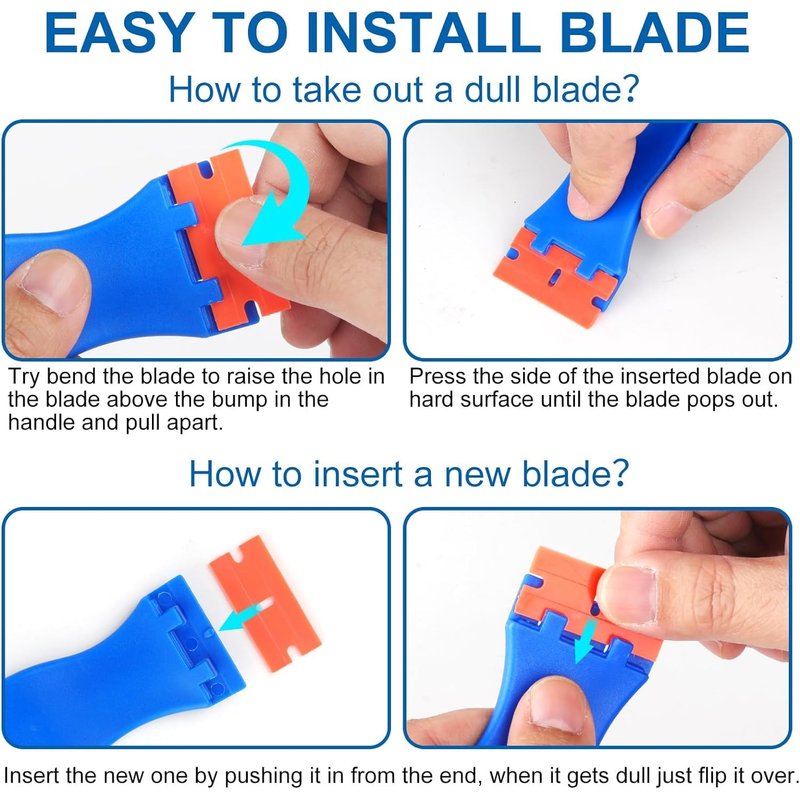- Easy to Use: Use the razor blade tool to meet all your scraping and cleaning needs, as well as plastic blades , it's safer for your fingers and surfaces.