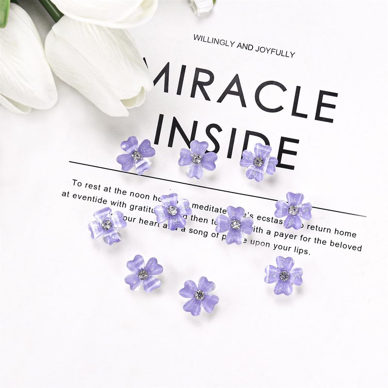 10 Pcs Small Flower Hair Clips with Rhinestone Mini Clover Cute Hair Pins Wedding Bridal Hair Accessories Decorative for Fine Hair Barrettes for Girls Women(Purple)