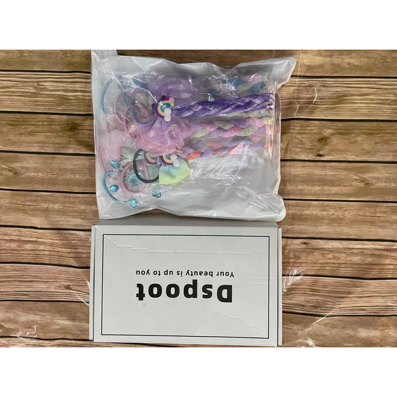 Dspoot rainbow braids hair extension with hair ropes are suitable for fancy braid hairstyles, half-ups ponytails, ponytails, tying mini ponytails, fancy braids and more. A fun and stylish way for you to create a beautiful hairstyle without chemical treatment.