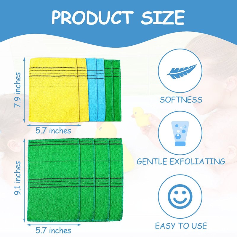 - What's included: you will receive 10 pieces of Korean exfoliating scrub washcloths, they are in different colors, so you will have enough quantity and color options to have daily replacement, and allow you to share them with your family