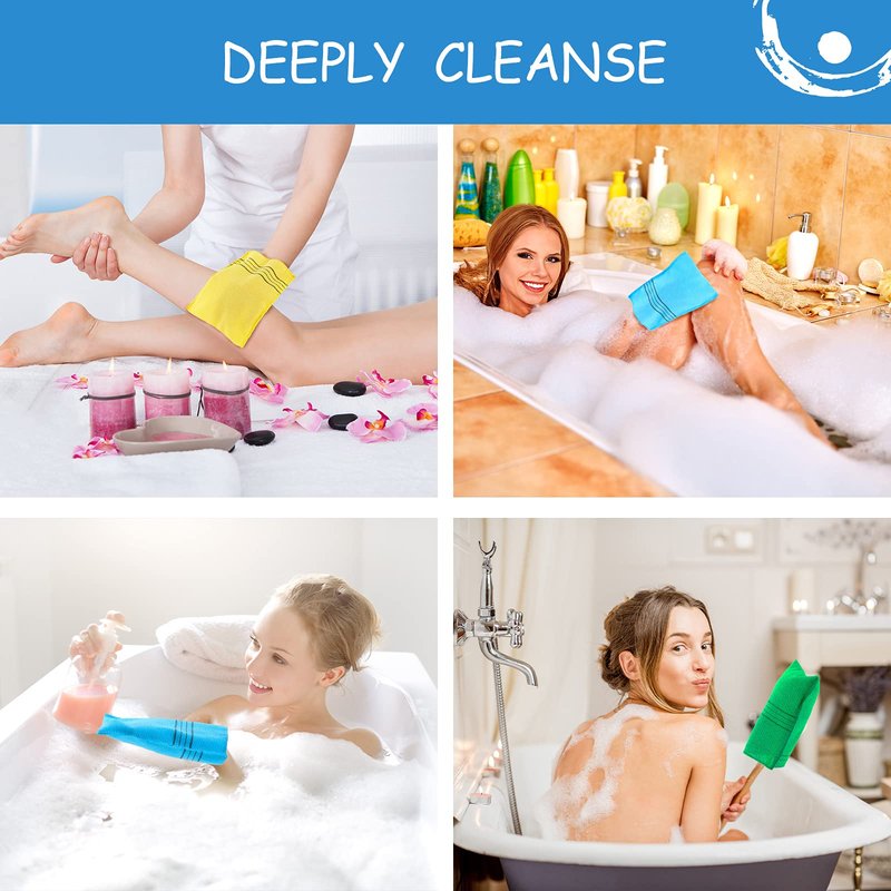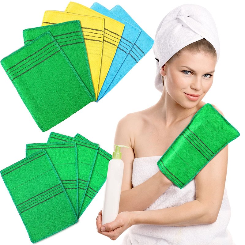 - Good performance: the double sided exfoliating shower towels mitt can help you remove dirt, grease and impurities from the whole body, make your skin soft and shiny, suitable for cleaning arms, legs, chest and back; Be careful not to use them on your face to avoid unnecessary harm