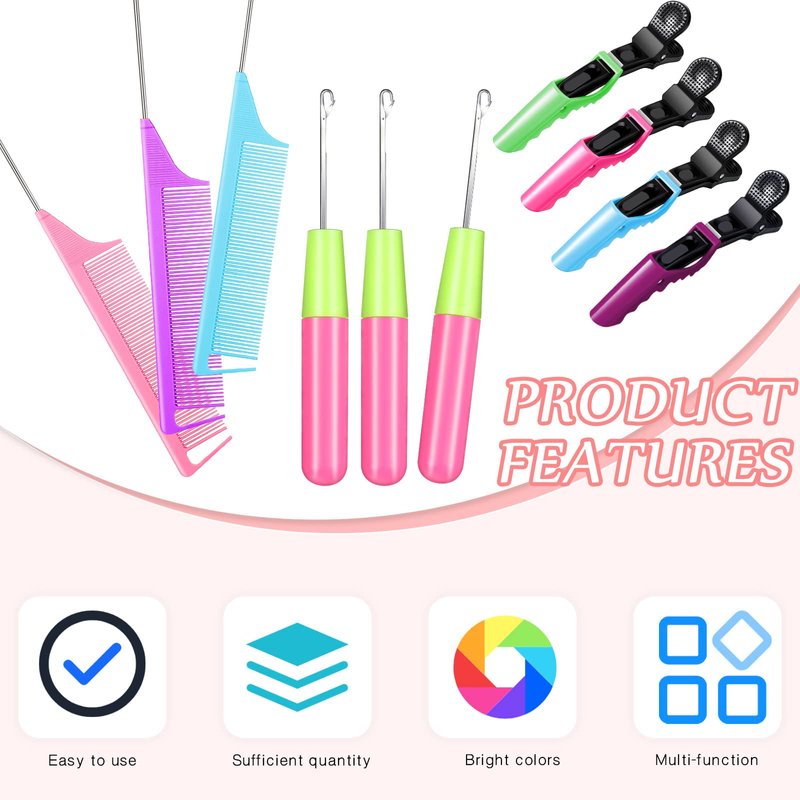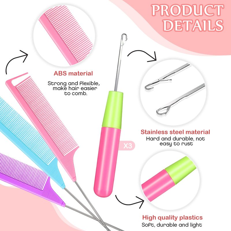 - Practical combination in the package: you will get 3 pieces of crochet hooks for crocheting hair, 3 pieces of hair stylist combs and 4 pieces of hair section clips, 10 pieces of hair accessories in total; The quantity is enough, which can satisfy your needs for creating different hair styles and allow you to share them with your family members