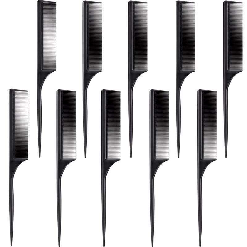 10 Pieces Rat Tail Comb Styling Carbon Heat Resistant Comb Anti Static Teasing Comb for Back Combing Root Teasing Adding Volume Evening Styling Black