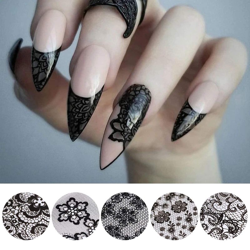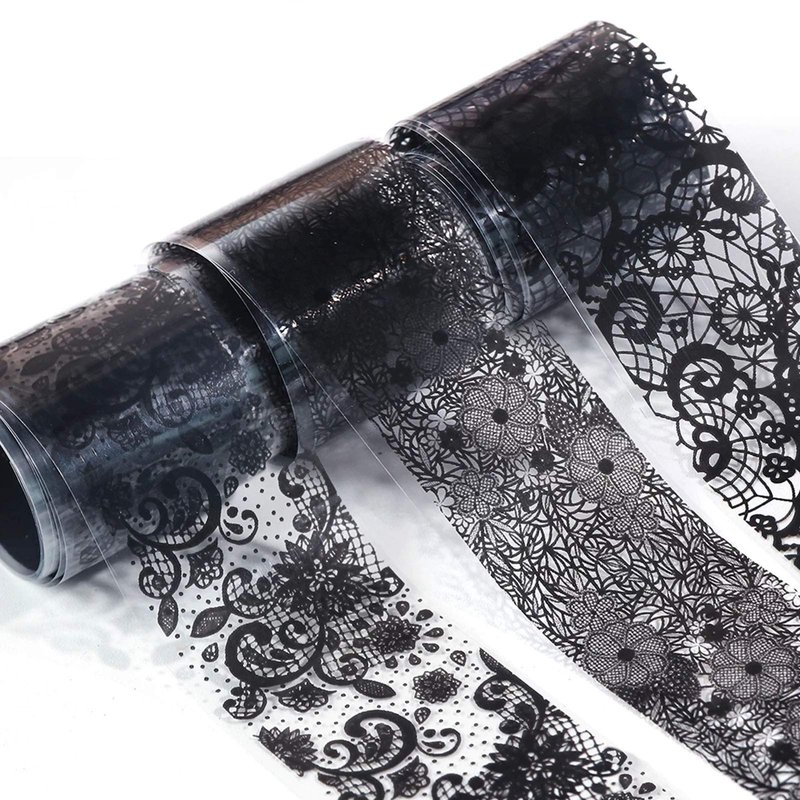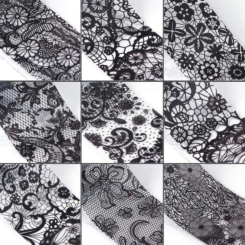 - Quantity: 10 Rolls black lace and laser nail foil transfer stickers come with 1 boxes with separate storage space, fashionable and shinning designs with