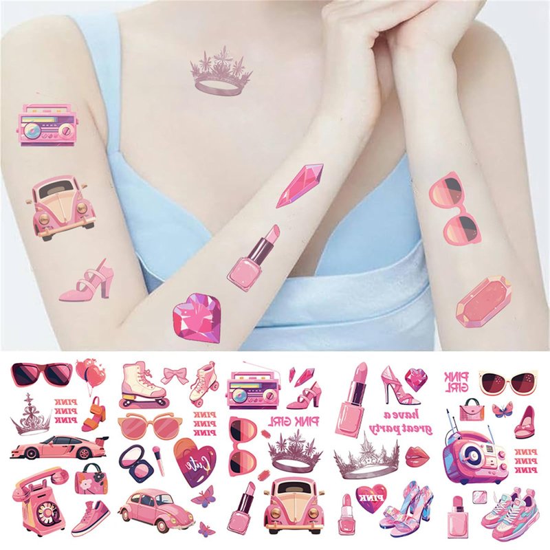- PERFECT TATTOOS FOR THEMED PINK PASTEL PREPPY PARTY DECORATIONS: Pink PREPPY temporary tattoo stickers include 10 sheets in total. There are 60Pcs super cute tattoo differences. Perfect for giving out party favors and holiday theme small gifts. The size of each sheet is 4.72 * 2.68 inches. One size fits a Adults and kids