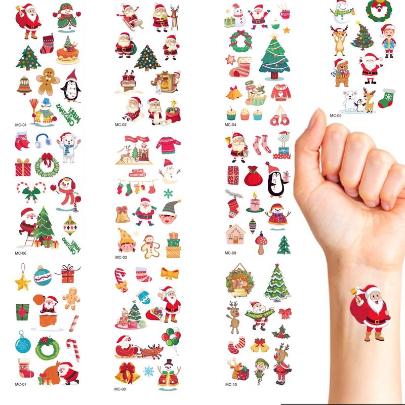 - Christmas Temporary Tattoo Design: Multi-design, colorful and abundant. Various designs for children to choose from in one pack to fit all your need, package of 100Christmas Temporary Tattoos with designs, include Santa, Christmas hat, Christmas socks, Christmas tree, reindeer, snowflake, snowman, candy, bells, gifts and etc