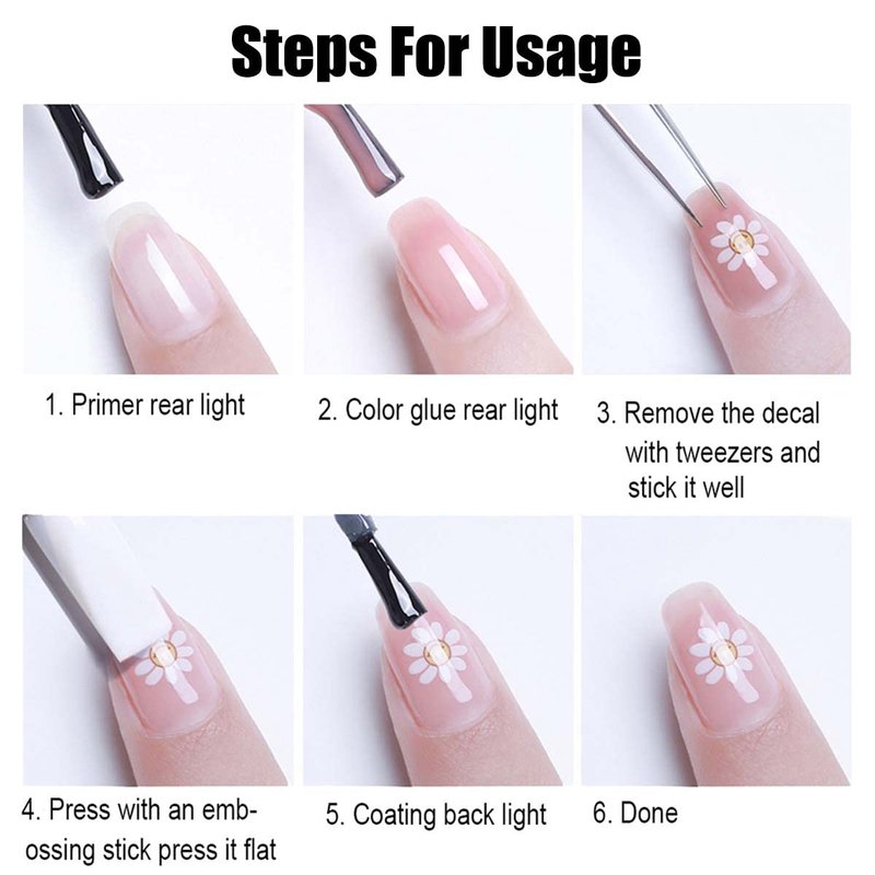 - Easy to Use: 3D nail sticker Self-adhesive design. Also instructions is included in the package, you can follow it to decorate your own style nails. Ideal for natural or acrylic nails