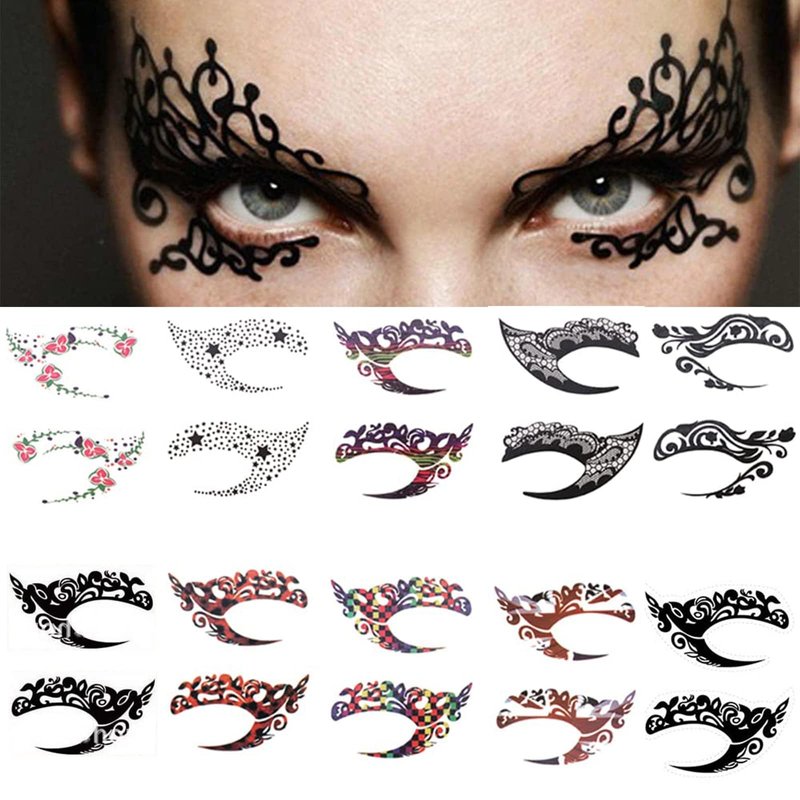 - Package - You will get 10 Pairs of Eyeshadow Face Tattoo Stickers with different colors and designs for Halloween Christmas Stage Masquerade Party.
