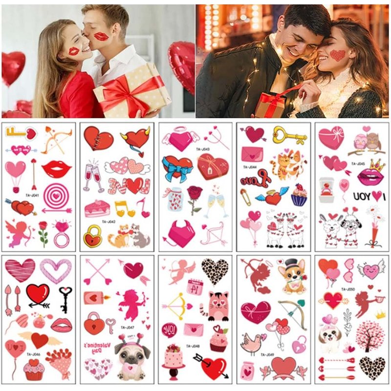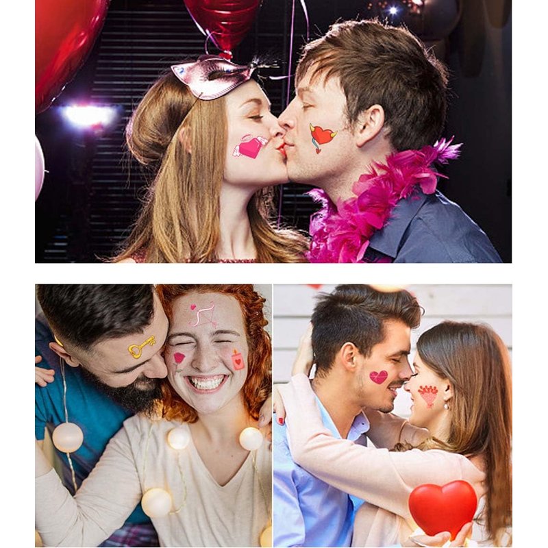 - Design: These Valentine's Day themed tattoo stickers are mainly composed of romantic and colorful elements such as hearts, lip prints, roses, etc., which can be freely matched to create a strong holiday atmosphere and bring good memories to you and your lover.