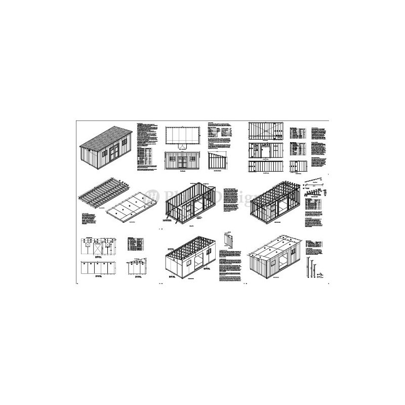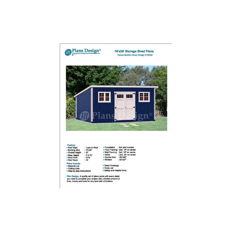10' x 20' Deluxe Back Yard Storage Shed Project Plans / Do it yourself, Modern Roof Style Design #D1020M