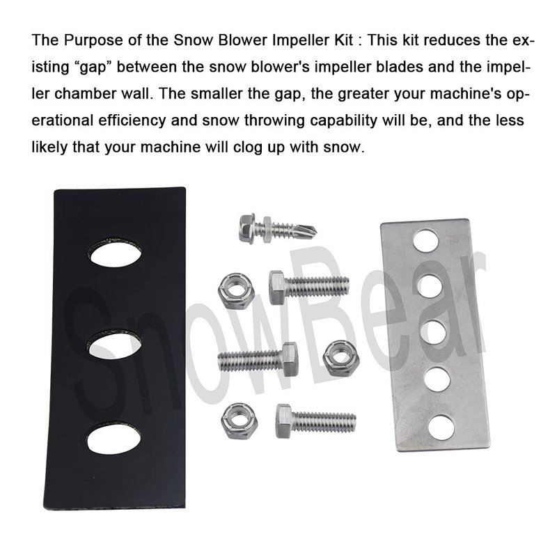 - The Purpose of the Kit : This kit reduces the existing “gap” between the snow blower's impeller blades and the impeller chamber wall. The smaller the gap, the greater your machine's operational efficiency and snow throwing capability will be, and the less likely that your machine will clog up with snow.