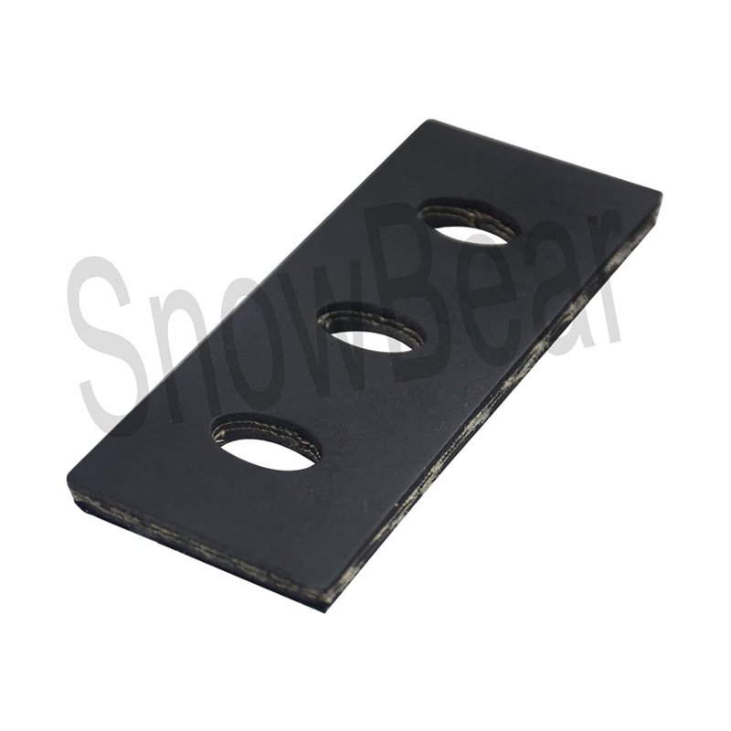 - Rubber Paddle 1/4" thick(2"W x 5"L), Made from Styrene Butadiene rubber (SBR rubber) ,SBR rubber with minimum tensile strength of 725 PSI (5 MPA),Hard rubber with a durometer of 65-75 ; Metal Strap with holes - 1 3/8" W x 3 3/4"L ,Punched flat bar stainless steel materials, 1/16" thick