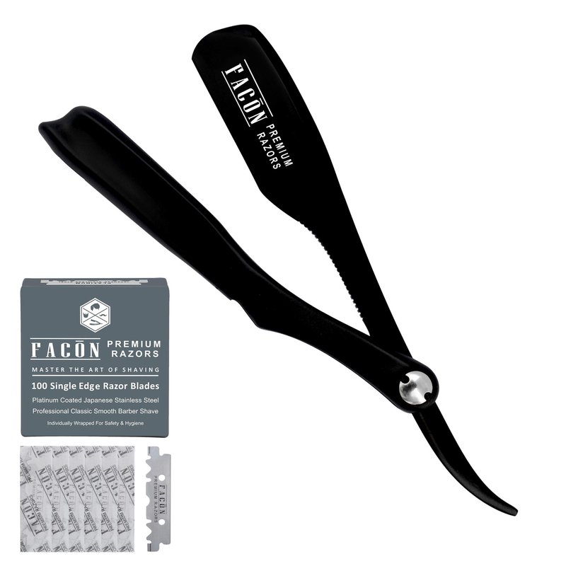 100 BLADES + Facón Professional Classic Japanese Straight Edge Barber Razor - Salon Quality Cut Throat Shavette