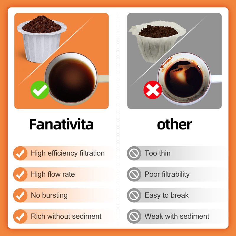 - ☕【Perfect Fit for Your K Cup Filter】Enjoy your favorite brew without worrying about compatibility issues with Fanativita K Cup filters disposable that fit seamlessly into all K Cup reusable coffee pods. K-Cup are not included, paper coffee filters only.