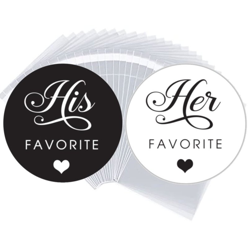 100 Labels 1.9 Inch His Her Favorite Wedding Favors Black White Stickers (4x6 Bags)