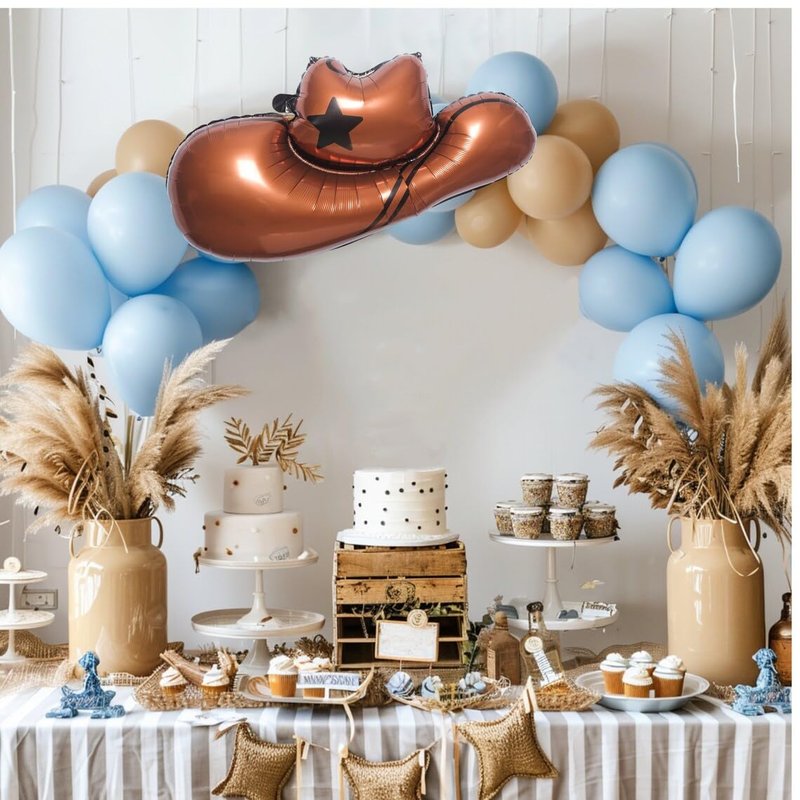 100% LIKED-3pcs Cowboy Hat Balloons, Western Themed Party Decorations, My First Rodeo Birthday Party, Baby Shower Supplies