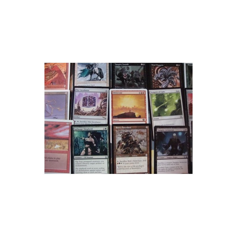 comtains 100 Magic the Gathering playing cards 50 or more will be uncommons with a few rares included/
