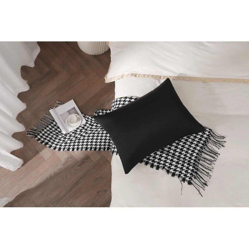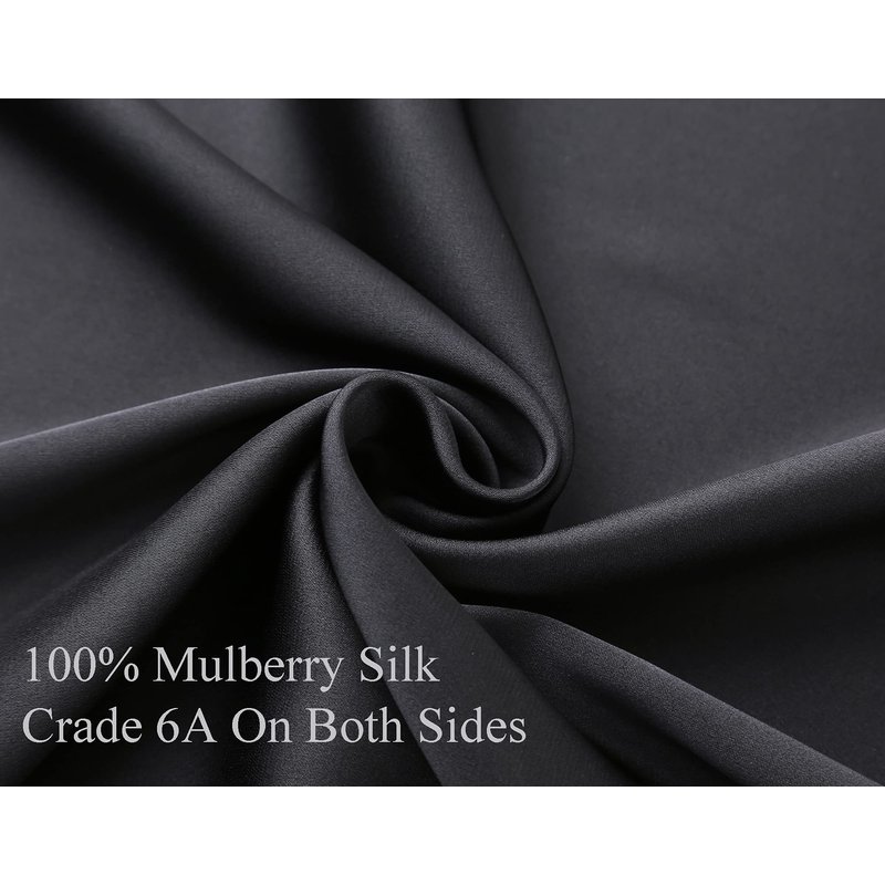 100% Mulberry Silk Pillowcase for Hair and Skin, Both Side 19 Momme Silk with Hidden Zipper,2 Pack (Black, Standard)