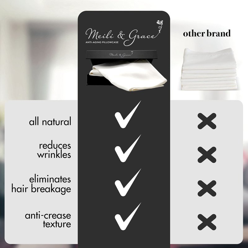 Wake up to younger-looking skin and gorgeous hair! By sleeping on 100% Silk Pillowcase from Meili and Grace your skin and hair get a special treatment that works actively while you rest. Traditionally Made with Modern Expertise Our silk pillow cases for women and men are crafted from the softest mulberry silk fibers harvested from Inner Mongolia. The 6A grade 100% silk fabric we use is traditionally made to achieve optimum beauty results. We worked with dermatologists to ensure your skin only receives the best skin care while you sleep. Crafted with Natural Materials Poor quality pillow covers made with cheap silk imitation may not give you the same optimal beauty benefits you can get from real silk pillow cases. We take good care of your skin by crafting silk pillowcases queen and king-sized that don’t have chemicals and won’t cause allergic reactions. Promotes Natural Rejuvenation Sleeping on our silk pillowcase for hair and skin helps smoothen the appearance of wrinkles, fine lines, and crow’s feet. It even discourages the formation of sleep wrinkles that eventually become permanent. Furthermore, our anti wrinkle pillow helps restore your skin’s radiance! Keeps Your Hair Silky Smooth Look stunningly beautiful with healthy and full hair every morning! Our king and queen pillowcases promote thicker and fuller hair over time, thanks to the 18 amino acids found in the silk fabric we used. These nutrients work hard to keep your hair stronger and youthful over time. Get Quality Sleep Every Time Enjoy the luxurious comfort of our traditionally made white silk pillowcase. It feels smooth and soft against your skin, promoting better sleep quality. So, you wake up well-rested and feeling better from the inside-out every morning! Get your Mulberry Silk Case from Meili and Grace now!