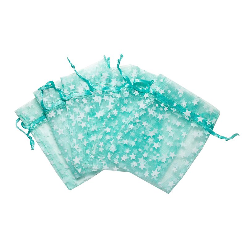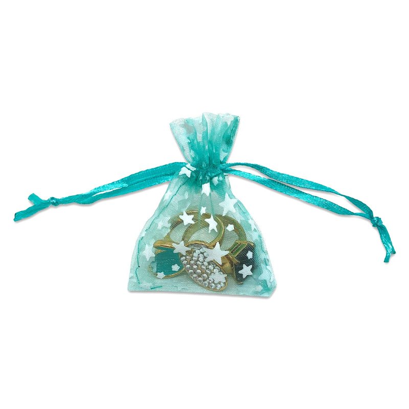 100-Pack 2x2.5 in Sheer Organza Gift Bags with Drawstring (X-Small) - Metallic Stars (Teal/White) - for Wedding Party Favors, Jewelry, Candy, Treats Mesh Pouch by The Display Guys