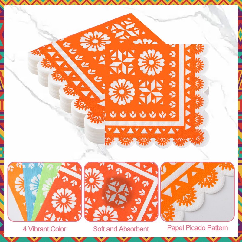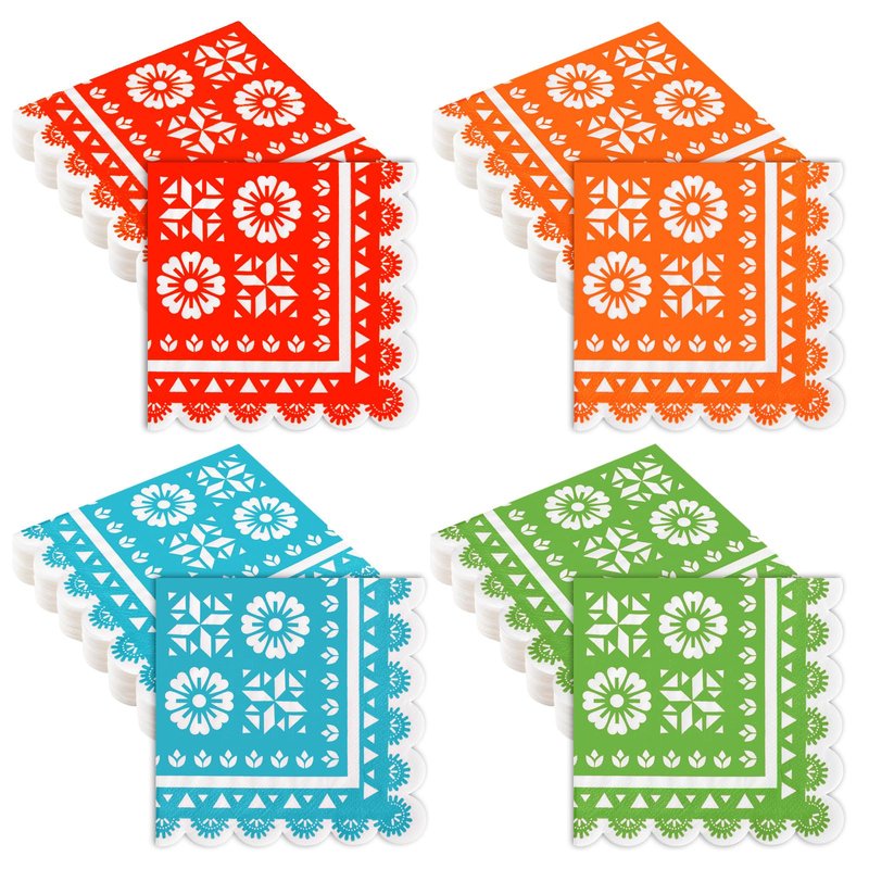 - Package Includes: 100 pack of Mexican cocktail napkins with classic papel picado pattern, printed in 4 color, 25 pieces of each; abundant in quantity to meet your various daily or event party needs