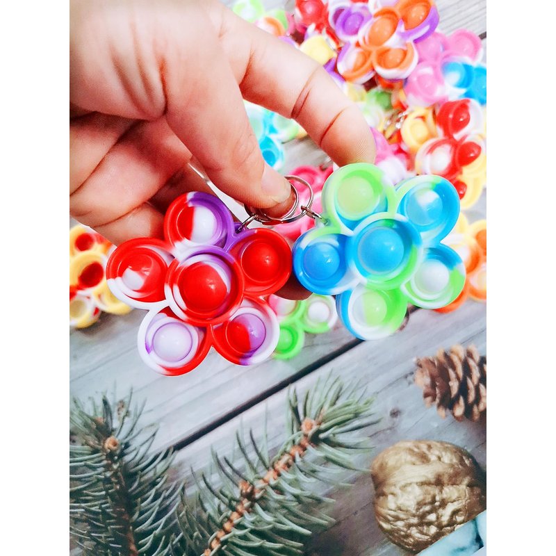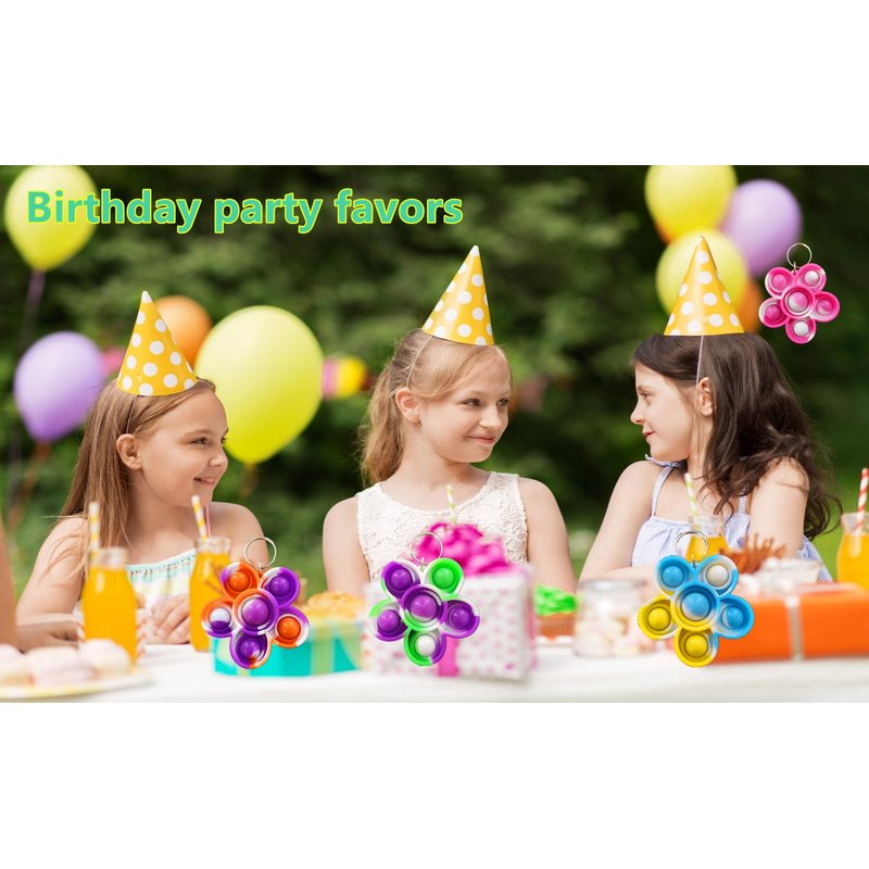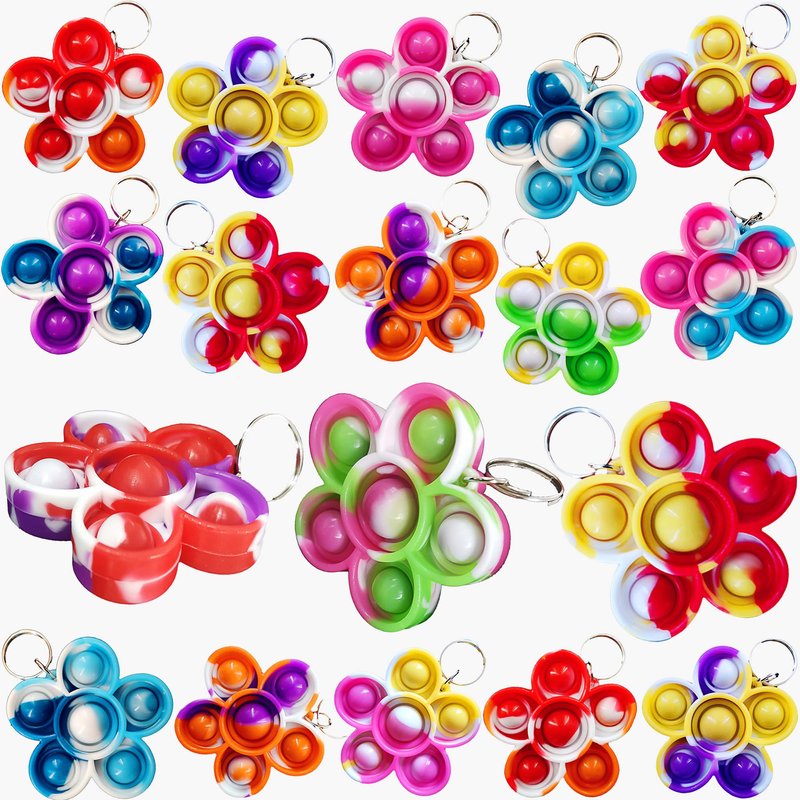 100 Packs Bluk Flowers Rainbow Mini Pop Fidget Keychain , Birthday Party Favors ,for Kids boy and Little Girl Summer Student Prize Gifts
