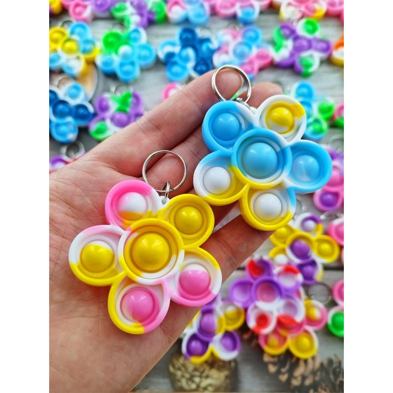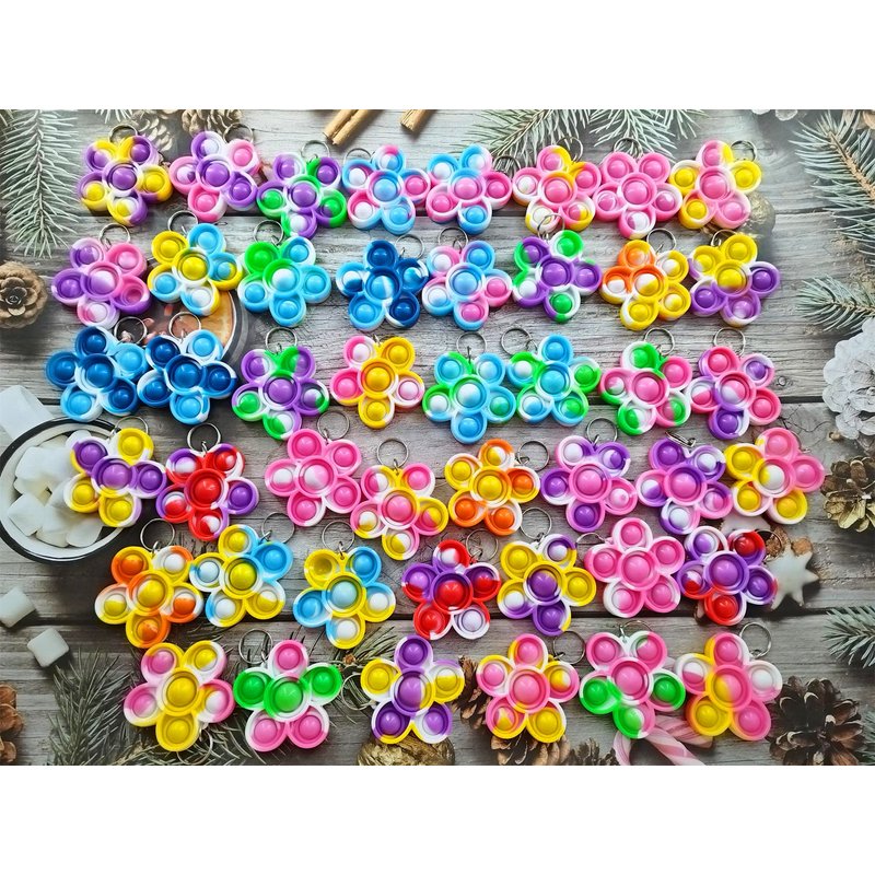 - 2,Made of silicone,package included:100 packs flower mini pop shape key chains,Random color to send