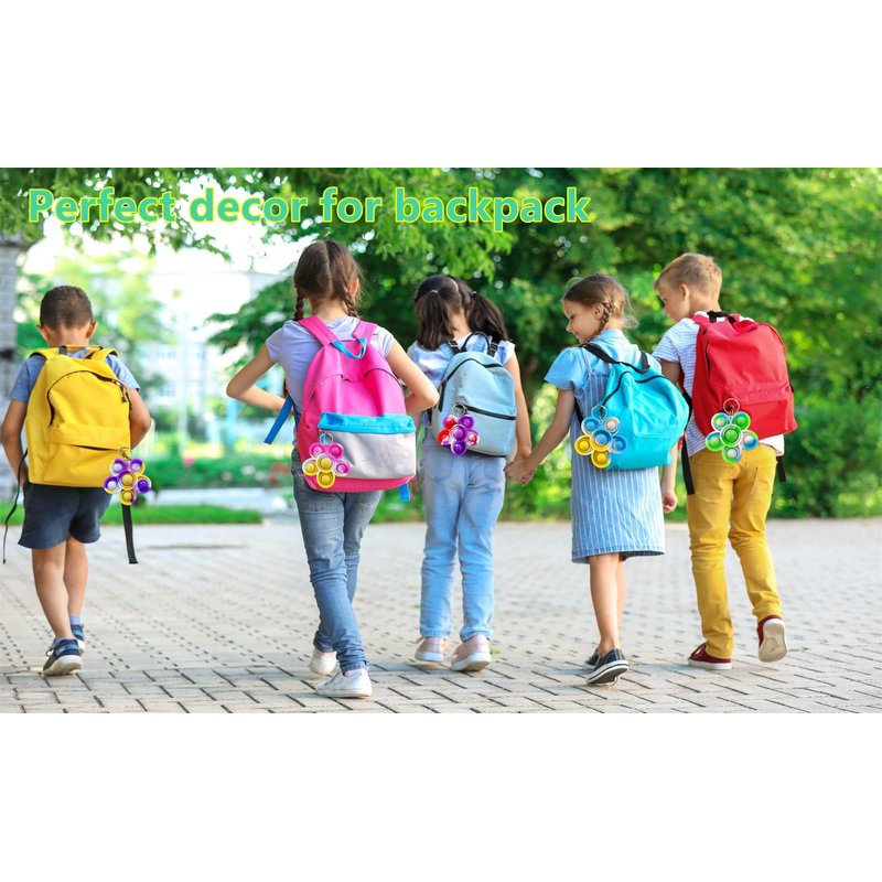 100 Packs Bulk Flower Backpack Keychain Mini pop Fidget for boy and Little Girl,Kids, Birthday Party Favors,Students Bubble Prize