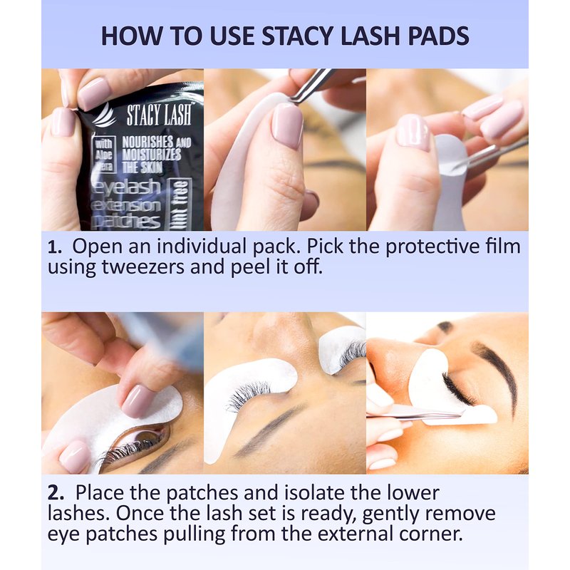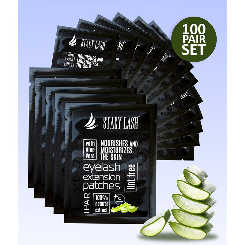 - Lint free + 100% Natural aloe extract – gel under eye pads for eyelash extension and lifting by Stacy Lash are lint free, safe and friendly for skin. The eyepads are impregnated with Aloe Vera and Vitamin C to nourish and moisturize the skin.