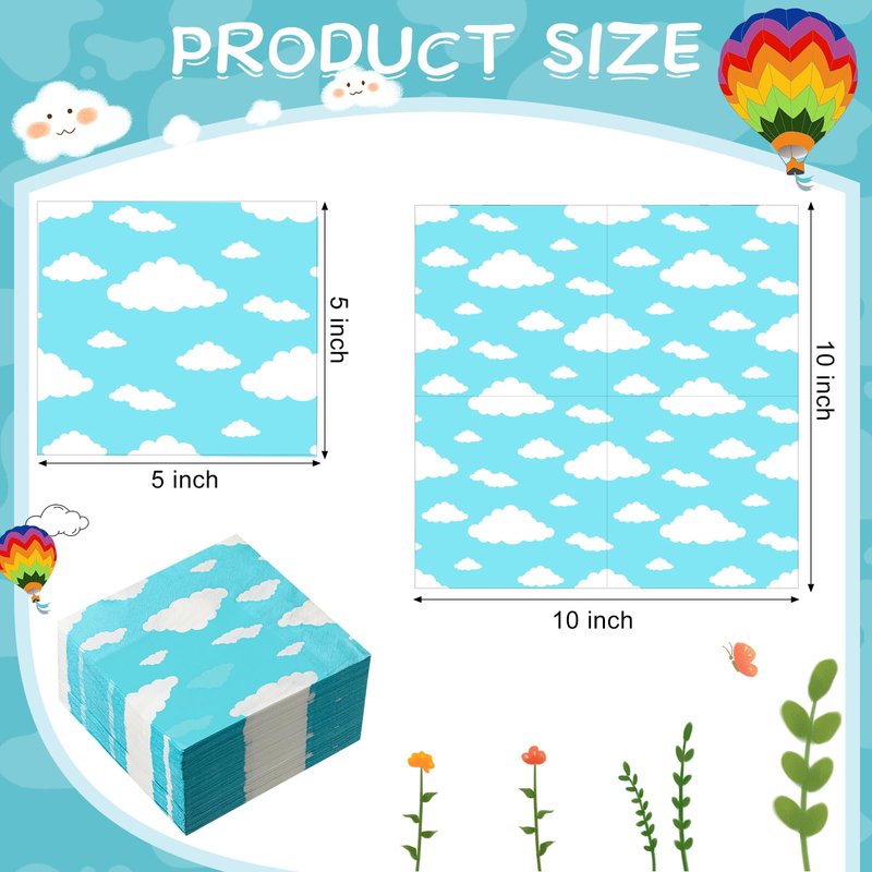 100 Pcs Blue Sky Clouds Napkins Sky Print Party Luncheon Napkins Disposable Paper Napkins Cartoon Story Party Supplies Cloud Themed Birthday Baby Shower Decorations Supplies, Folded 5 x 5 Inch