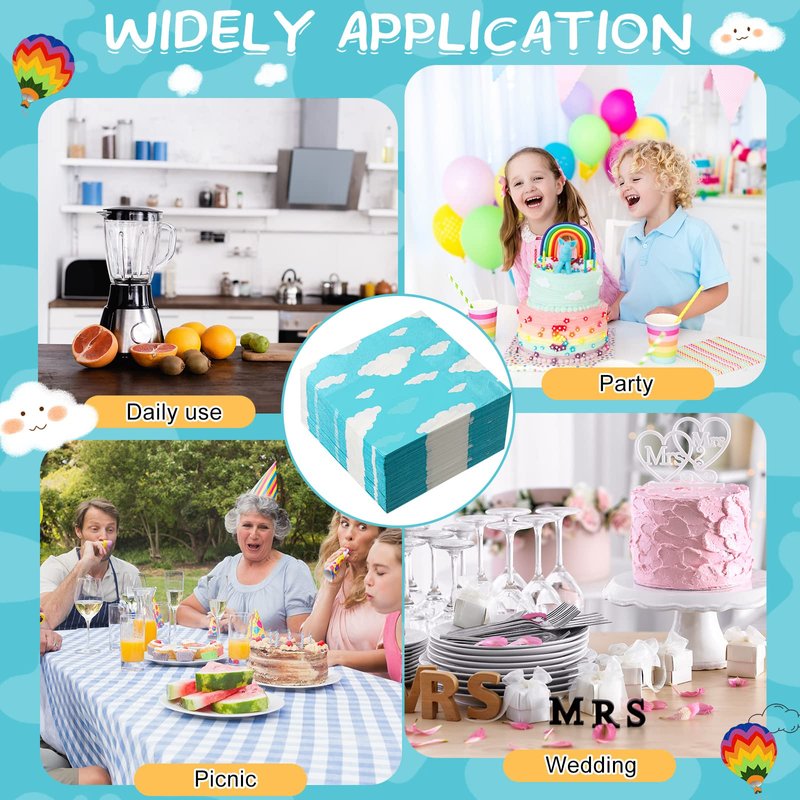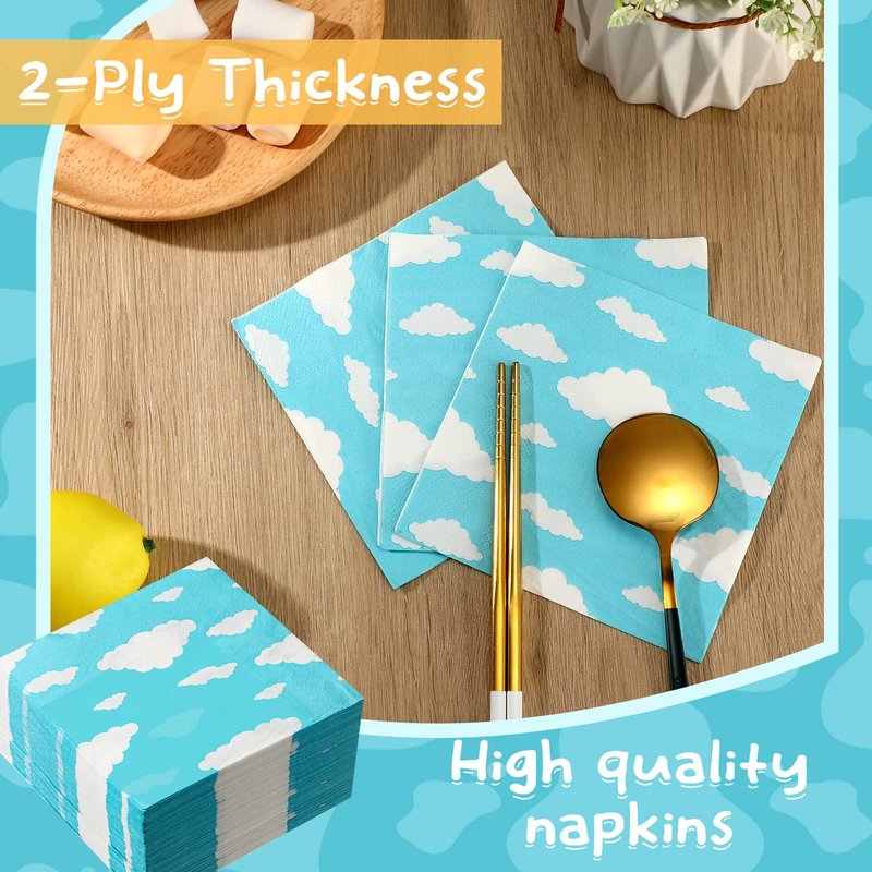 - Quality Material: made of 2 layers of quality paper, our cloud print napkins are soft and absorbent, not easy to tear when applying, disposable for easily cleaning up, bringing a nice use experience