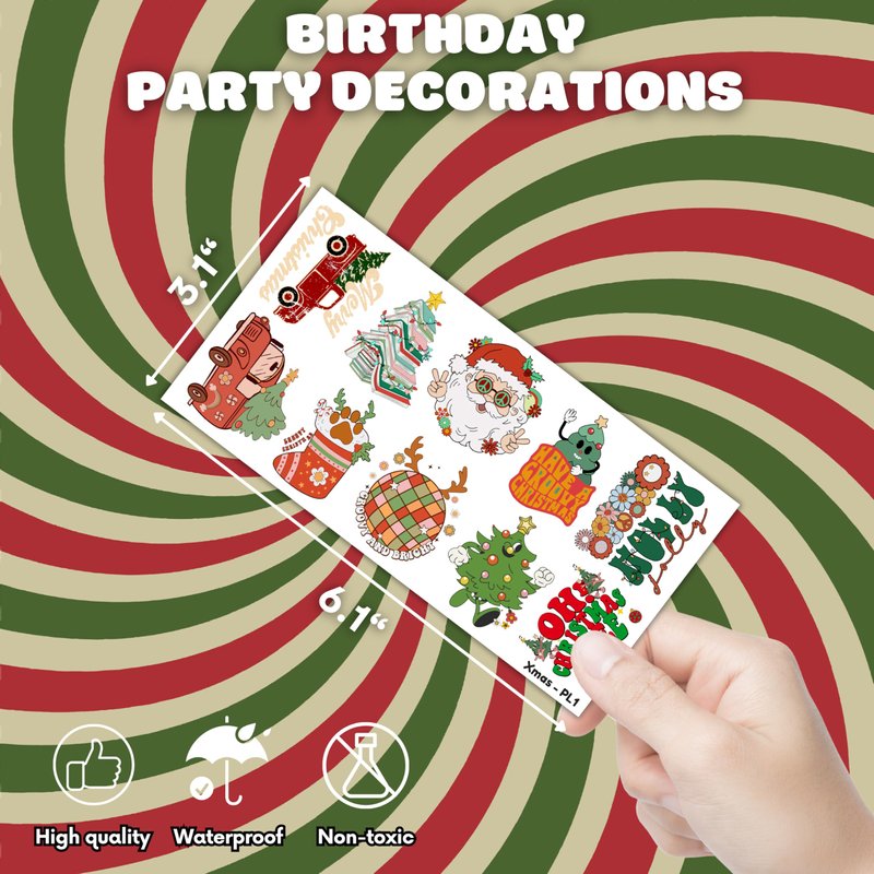 - Widely used: Christmas Groovy Retro Boho Hippie Noel Xmas Winter Temporary Tattoos pieces are suitable for many occasions such as birthday party supplies, party decorations, party favors, party bags, DIY decorations, pool and the beach or gift. Temporary tattoos are the best party favors and goodie bags fillers ever for any kind of celebration!