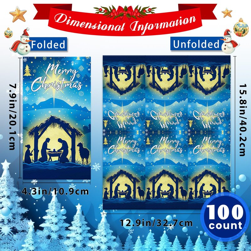 100 Pcs Christmas Nativity Paper Napkins,Disposable Jesus Holy Night Christmas Paper,Xmas Nativity Decorative Religious Hand Towels for Winter Holiday Christmas Dinner Party Supplies
