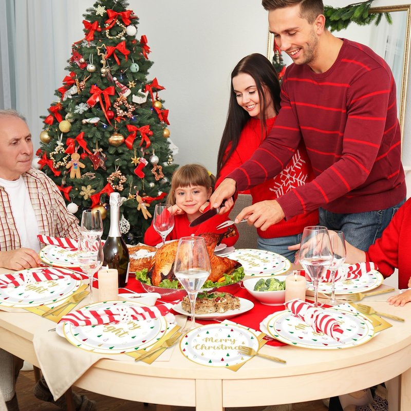 - 【Enough For Your Guests】Stock up with this set of quality plates,forks and napkins Sets to make sure you have enough for any Christmas themed party or event.The Disposable Holiday Dinner Paper Party Supplies serve 25 guests, which will make your table setting look great and entertain all your guests.