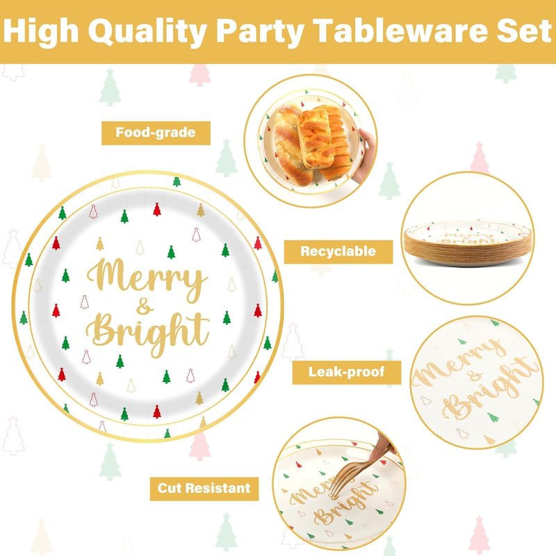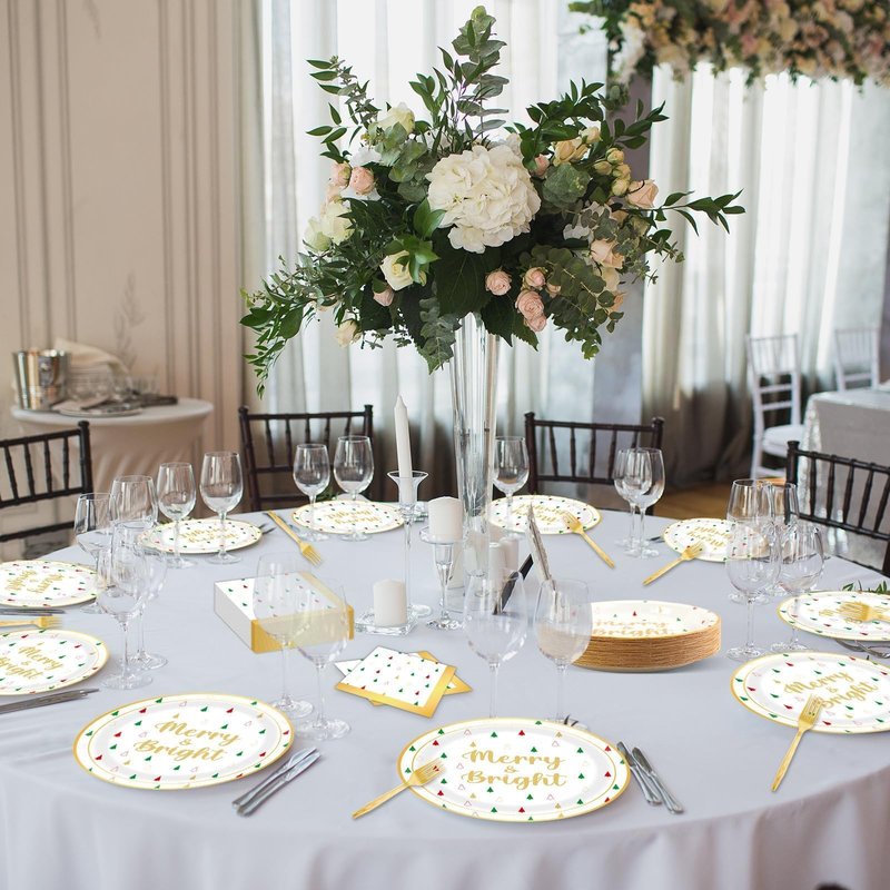 - 【Elegant Design】These Merry Christmas Party Paper Plates Napkins not noly exclusively designed for Gift Boutique,but also for Christmas Party. Plates feature “Merry Christmas‘’ in gold foil with a gold border around the plate and Christmas tree design in assorted colors – red, green and gold,which will create an warm atmosphere and Sense of luxury for your Christmas party.
