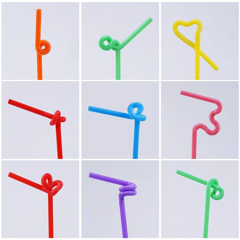 100 Pcs Colorful Plastic Long Flexible Straws.(0.23''diameter and 10.2"long)
