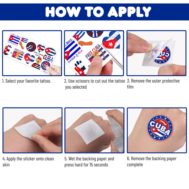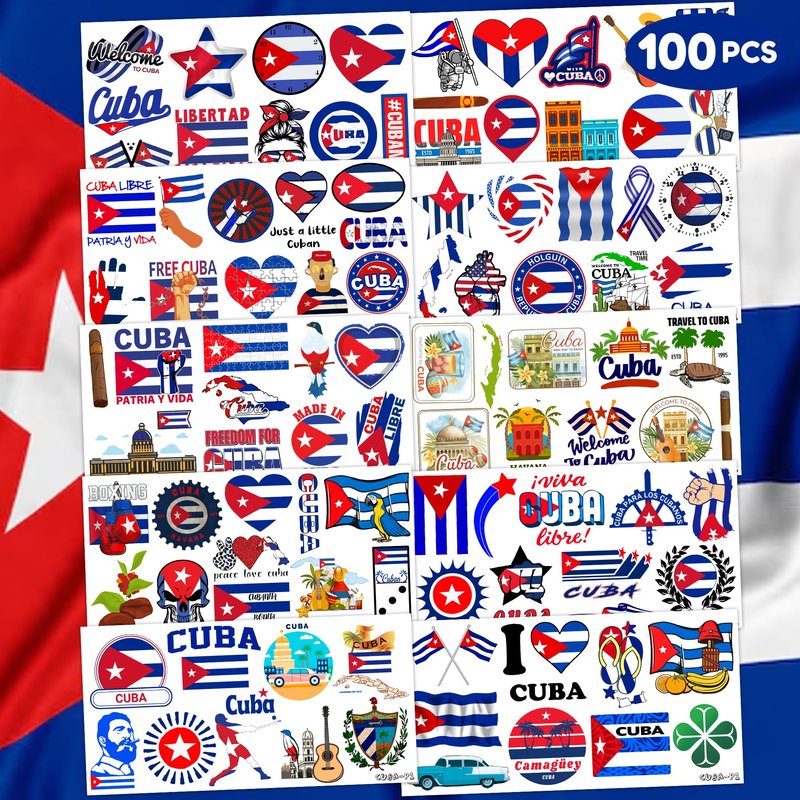 - ❤️🔥CUBAN FLAG: Hi everyone! An amazing set of 10 sheets including 100 a size of 6.1 by 3.1 inches. These CUBAN tattoo pieces will be sent to you quickly, place your order to get these temporary tattoos.