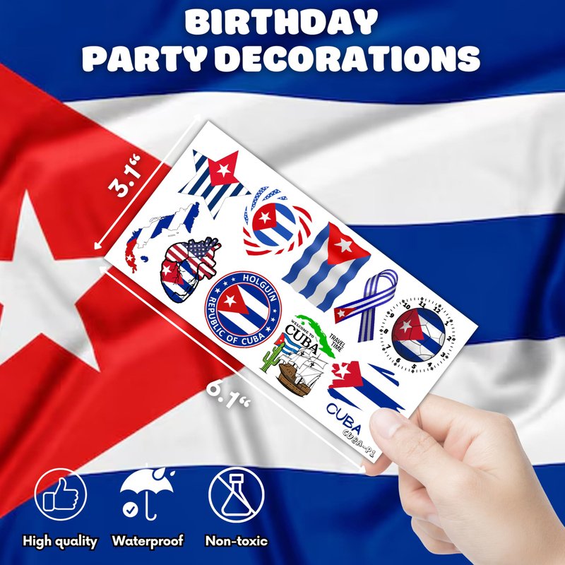 - 🎆CUBAN PARTY DECORATIONS: At your party, these temporary tattoos inspired by Cuba will look fantastic! Pick from an abundance of amazing Cuban Flag Havana Nights,... Now grab some accessories to add some style to your occasion!
