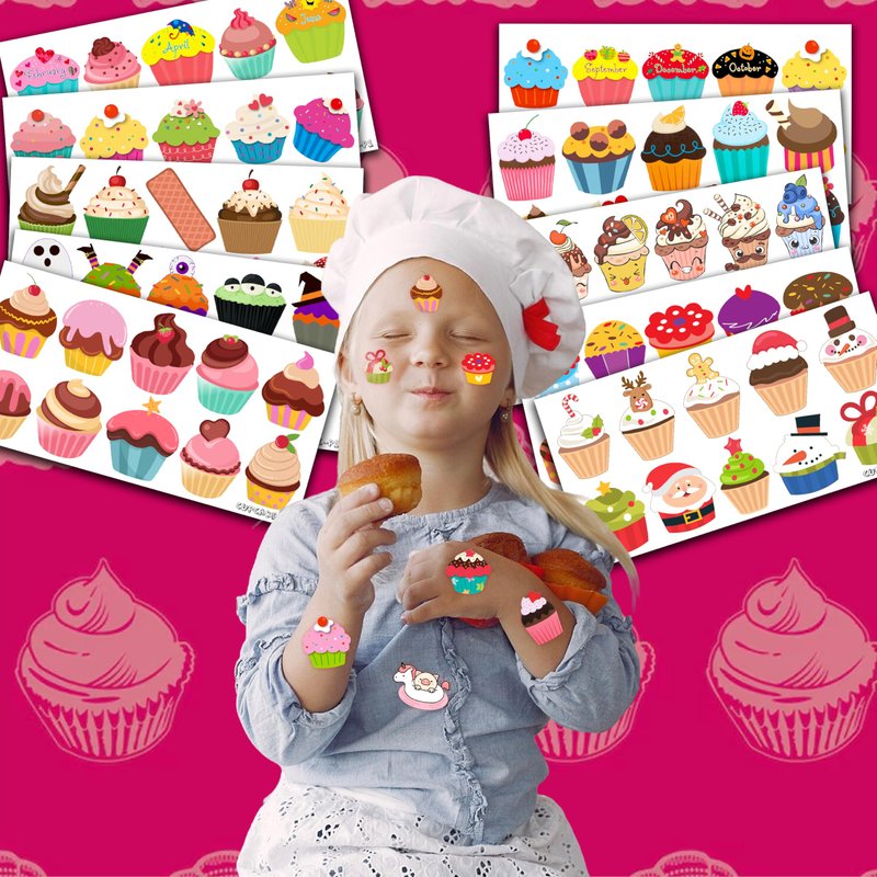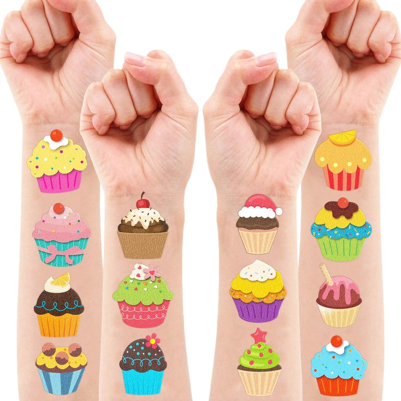 • 🧁CUPCAKE PARTY DECORATIONS: Hi everyone! An amazing set of 10 sheets including 100 a size of 6.1 by 3.1 inches. These CUPCAKE tattoo pieces will be sent to you quickly, place your order to get these temporary tattoos.