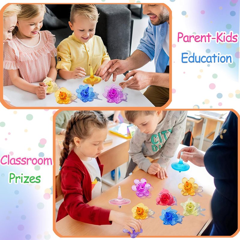 - 【Exercise Motor Coordination】These fun toys are the favorite gifts for kids at parties. There will be many moments of learning and interactive entertainment for kids, who can have them with friends and family.It can be categorized by color or style and can be counted from 1 to 100. Use your index finger and thumb to rotate it on a flat surface and see which top spins the longest. This can develop children's fine motor skills, hand-eye coordination, and exercise to attract attention. With these party gifts, children will spend their happy after-school time.