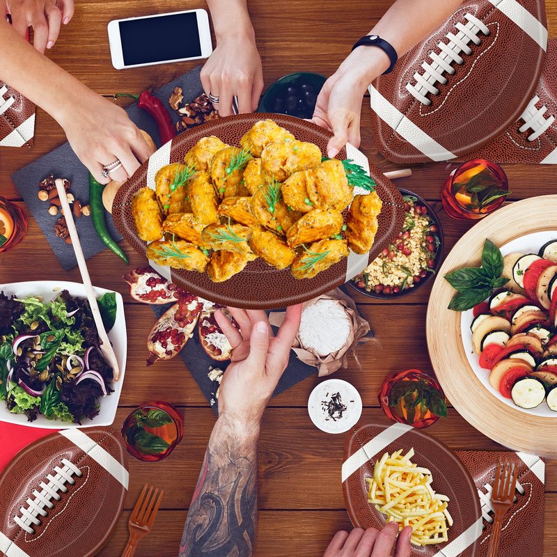 - 🏈Easy To Clean:This football party disposable tableware set greatly saves your time and allows you to host a relaxed and enjoyable football party. After the party is over, you can throw them away so you can spend more time playing with your friends, kids, and family.